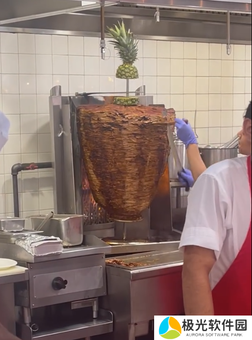 所谓沙威玛,是源自中东地区的传统美食。它是一种将肉(通常是羊肉、鸡肉或牛肉)串在垂直的烤肉叉上,然后缓慢旋转烤制而成的肉食。游戏中还会搭配卷饼、薯条、蔬菜,所以看起来更像常见的鸡肉卷。