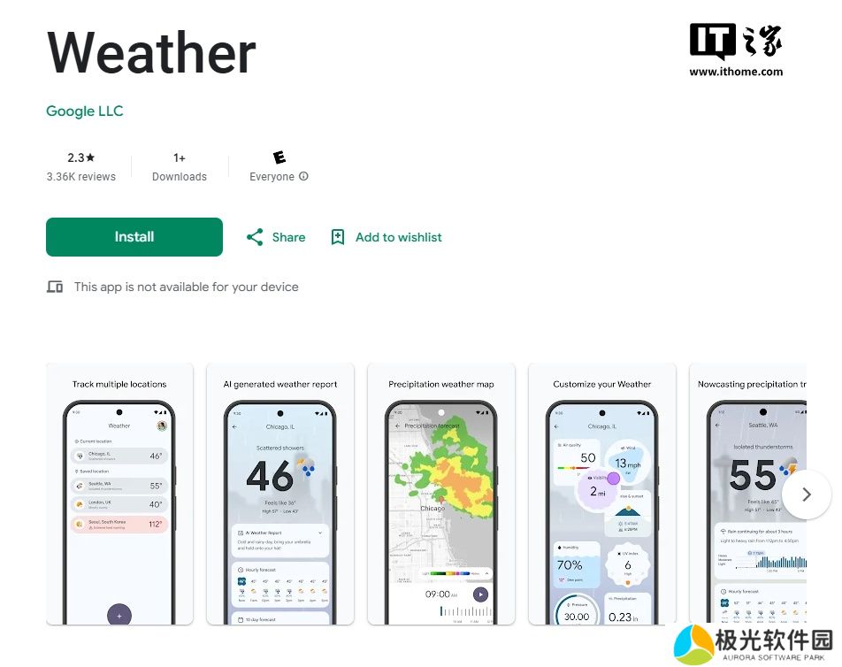 截至本站发稿时,该应用目前的评分为 2.3 星,一些用户抱怨称,如果不先将其添加到保存的位置列表中,就无法查询随机城市的天气。