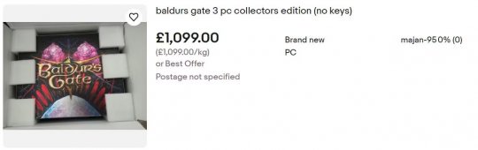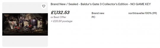 拉瑞安发行总监迈克尔·杜斯(Michael Douse)很快注意到这一情况,他在拍卖网站上发现有黄牛正在以高于售价10倍的2900英镑(约合人民币26739元)的高昂价格出售《博德之门3》的实体收藏版。