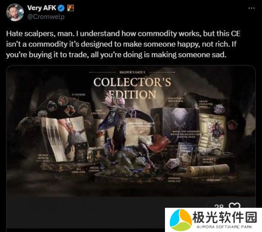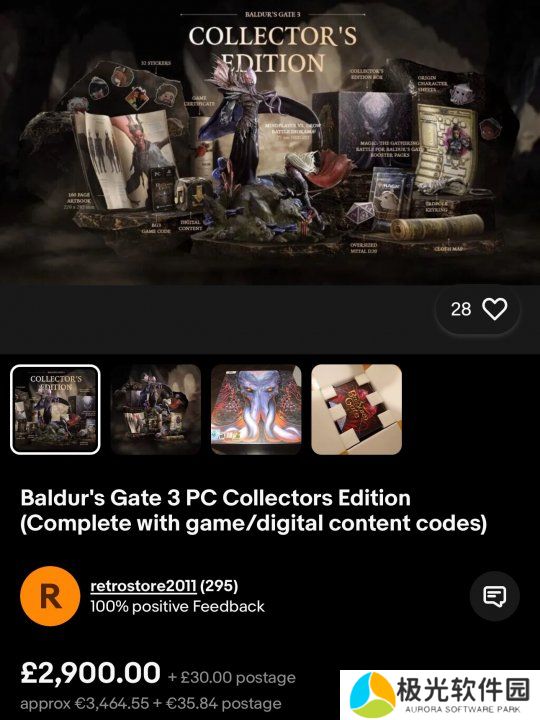 不过可惜的是,倒卖《博德之门3》实体收藏版并非个别现象,根据外媒的调查,还是能在eBay等网站上看到不少被黄牛党高价出售的《博德之门3》实体收藏版。