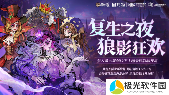 狼人杀七周年线下主题活动同步上线!网易狼人杀携手郑州方特欢乐世界、长沙湘江欢乐海洋公园两大主题景区乐园带来惊喜联动,即日起—11月10日前往相应景区参与狼人杀主题活动,即可进入复生之夜,一起狼影狂欢!还有超多福利等你来揭晓!
