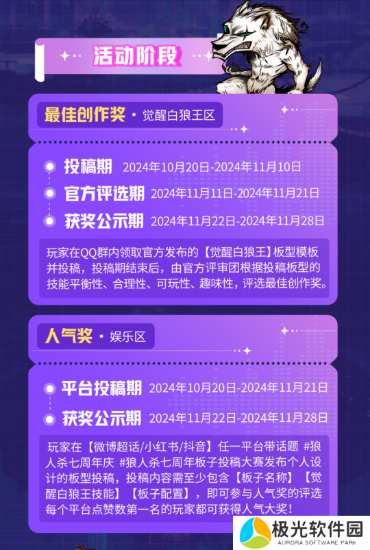 想让自己原创的技能成为狼人杀经典吗?想让自己设计的角色形象成为狼人杀对局常客吗?狼人杀七周年“板子投稿大赛”启动!参与板子创作,即有机会获得现金奖励,还有机会获得狼人杀策划的青睐,让自己设计的板子加入狼人杀游戏内!快来参与吧!