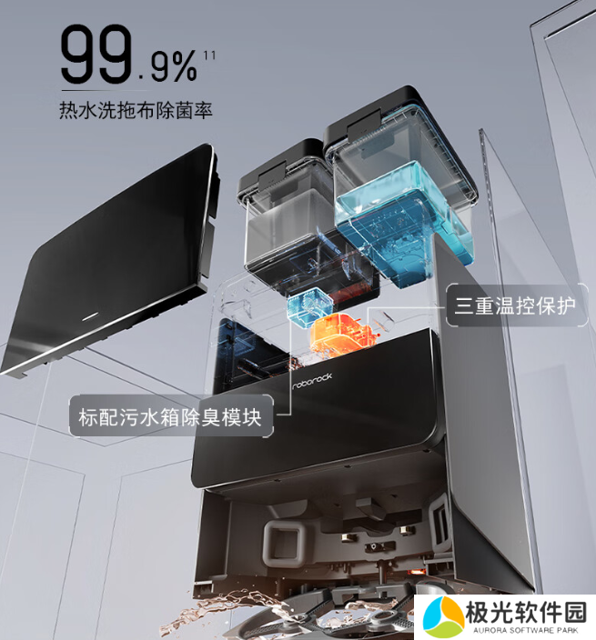 石头 G20S Ultra 配备顶配自清洁基站,支持 80 度热水除菌、基站 UVC 杀菌、自动抑菌除臭、自动集尘、补水、烘干等多项功能。