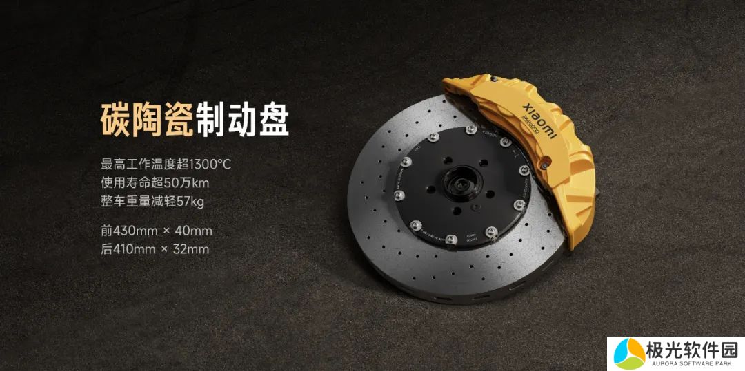 小米 SU7 Ultra 配备的赛用碳陶瓷制动盘最高工作温度超 1300 度,正常使用寿命可超过 50 万公里,正常使用可做到几乎终身免维护。