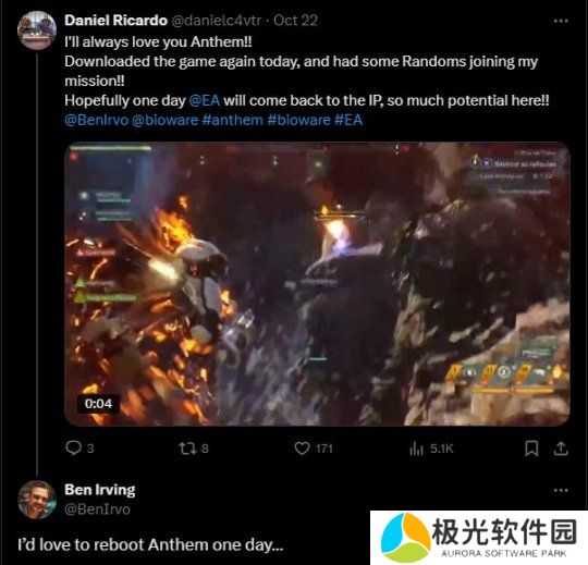 在BioWare的新作《龙腾世纪:影幛守护者》即将发售的当下,仍旧有部分玩家钟情于BioWare的老游戏。名为“@danielc4vtr”的推特用户就分享了他重新下回《圣歌》,并且还在线匹配到了其他玩家一起战斗的快乐时光。