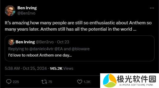 不仅如此,Ben Irving随后还补充十分惊讶时隔多年还能看到有玩家对《圣歌》如此充满热情,因此感叹:“《圣歌》在这个世界上还有着不可估量的潜力……”