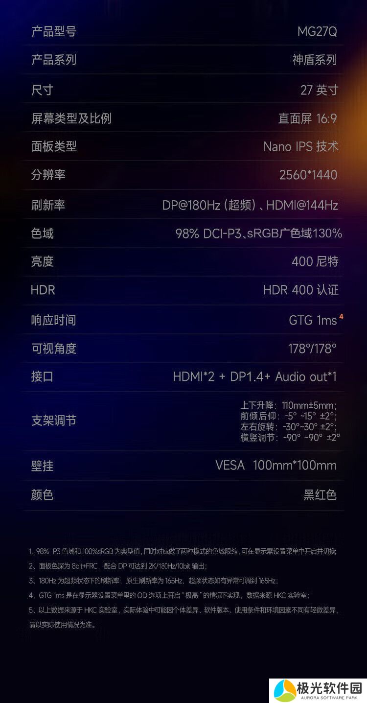 本站 10 月 30 日消息,HKC 惠科神盾 MG27Q 电竞显示器发布于 2023 年 1 月,采用 NanoIPS 面板、LGD 原厂背光,27 英寸 2K 分辨率,180 Hz 刷新率,响应时间为 1 毫秒。