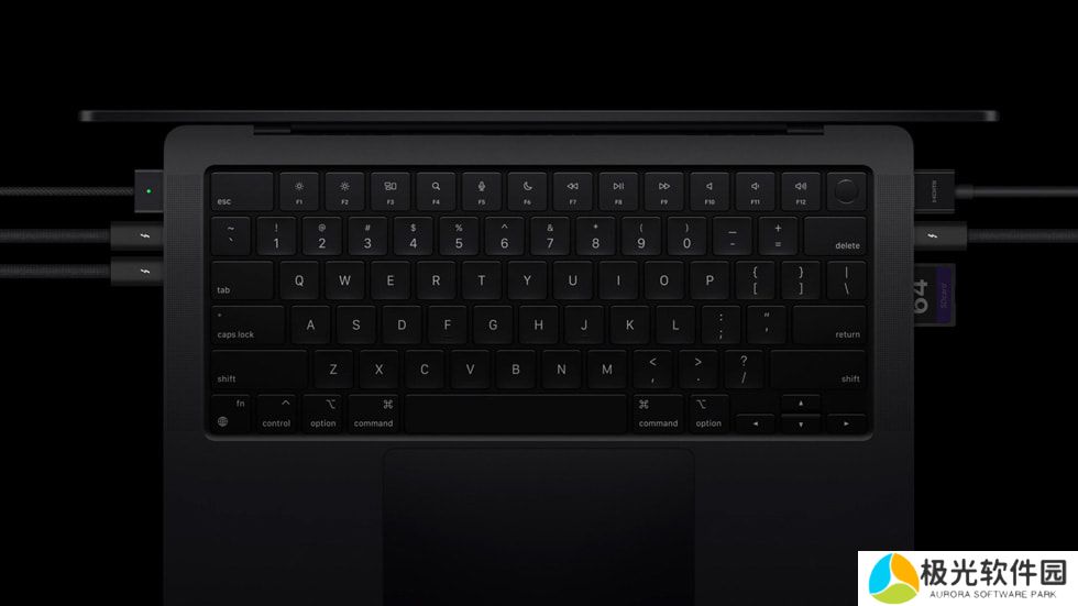 搭载 M4 Pro 和 M4 Max 的 MacBook Pro 均配备了雷雳 5 端口,数据传输速度提升可达两倍以上,最高达 120Gb/s。