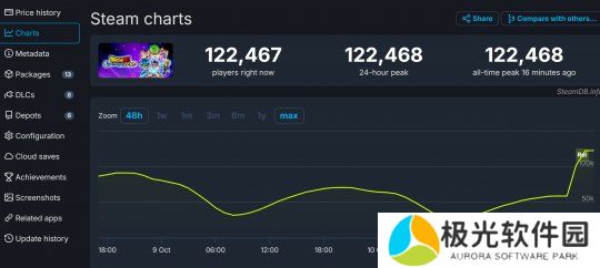 虽然是才解锁发售,但SteamDB显示,《七龙珠 电光炸裂!ZERO》Steam当前在线已经超过了12万人,随着周末的到来,Steam在线峰值有望翻倍。