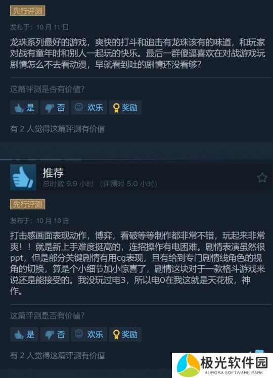 用户su_xin表示:“游戏是好游戏,比起其他龙珠游戏更有“高速战斗”的感觉,有龙珠打斗该有的味道,画面、战斗系统都很不错,一旦上手了就能获得相当不错的游戏体验,是合格的格斗游戏,情怀方面的彩蛋也不少,演出、台词、装扮、各方面我还是比较满意的