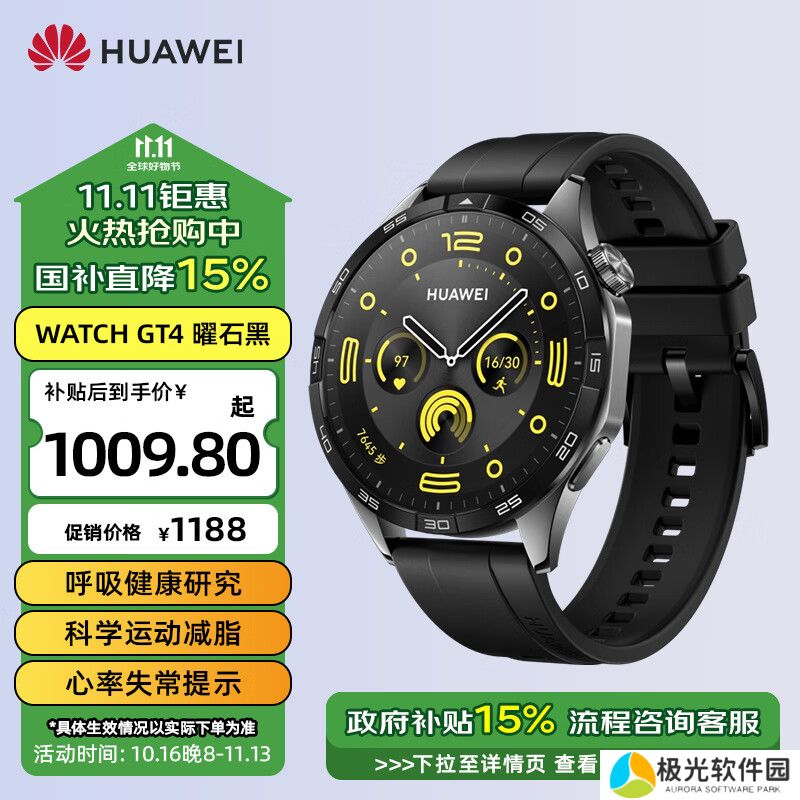 心律失常提示:华为 WATCH GT4 智能手表 46mm 版 907 元