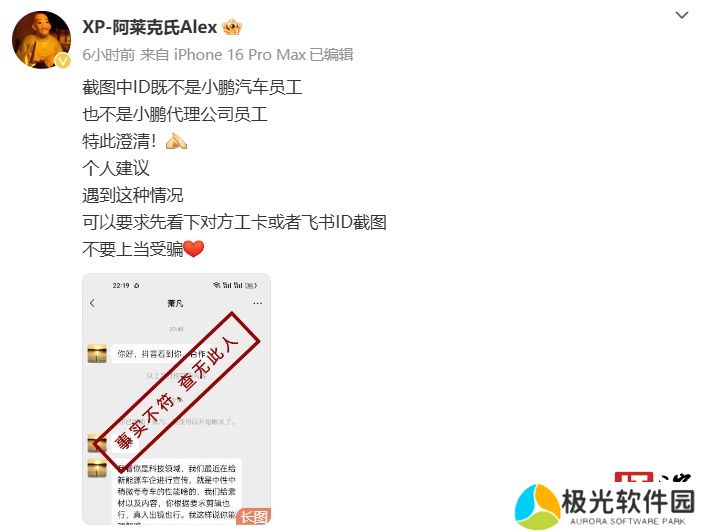 小鹏汽车品牌公关负责人澄清“给博主 50 元稿费合作宣传”:事实不符、查无此人